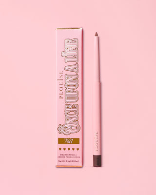 A pink P.Louise package with pink and gold designs saying 'Once Upon A Line' containing an eyeliner pencil