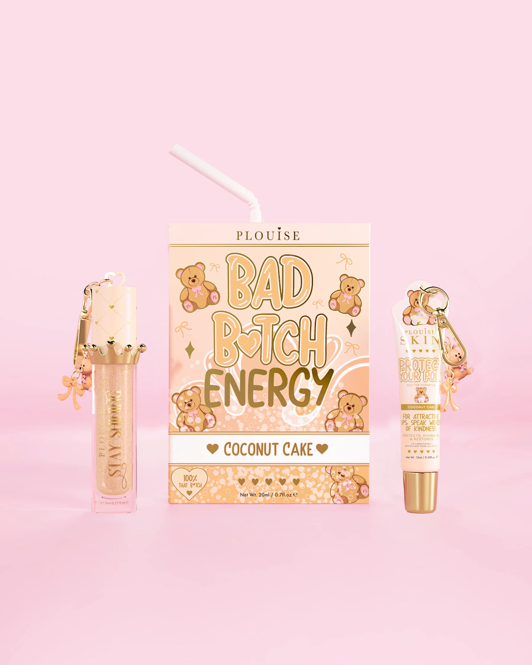 Step into your soft era with the P.Louise Soft As Teddy Trio, a teddy-approved edit designed to drench your lips, hair, and skin in comfort, hydration, and Coconut Cake sweetness.