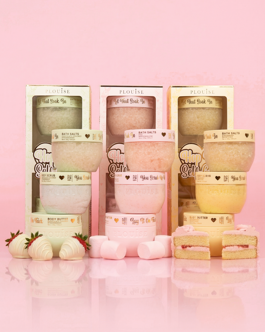 Inside the bundle, you’ll discover 3 Hop Into Self-Care sets, each bursting with dessert-inspired scents: