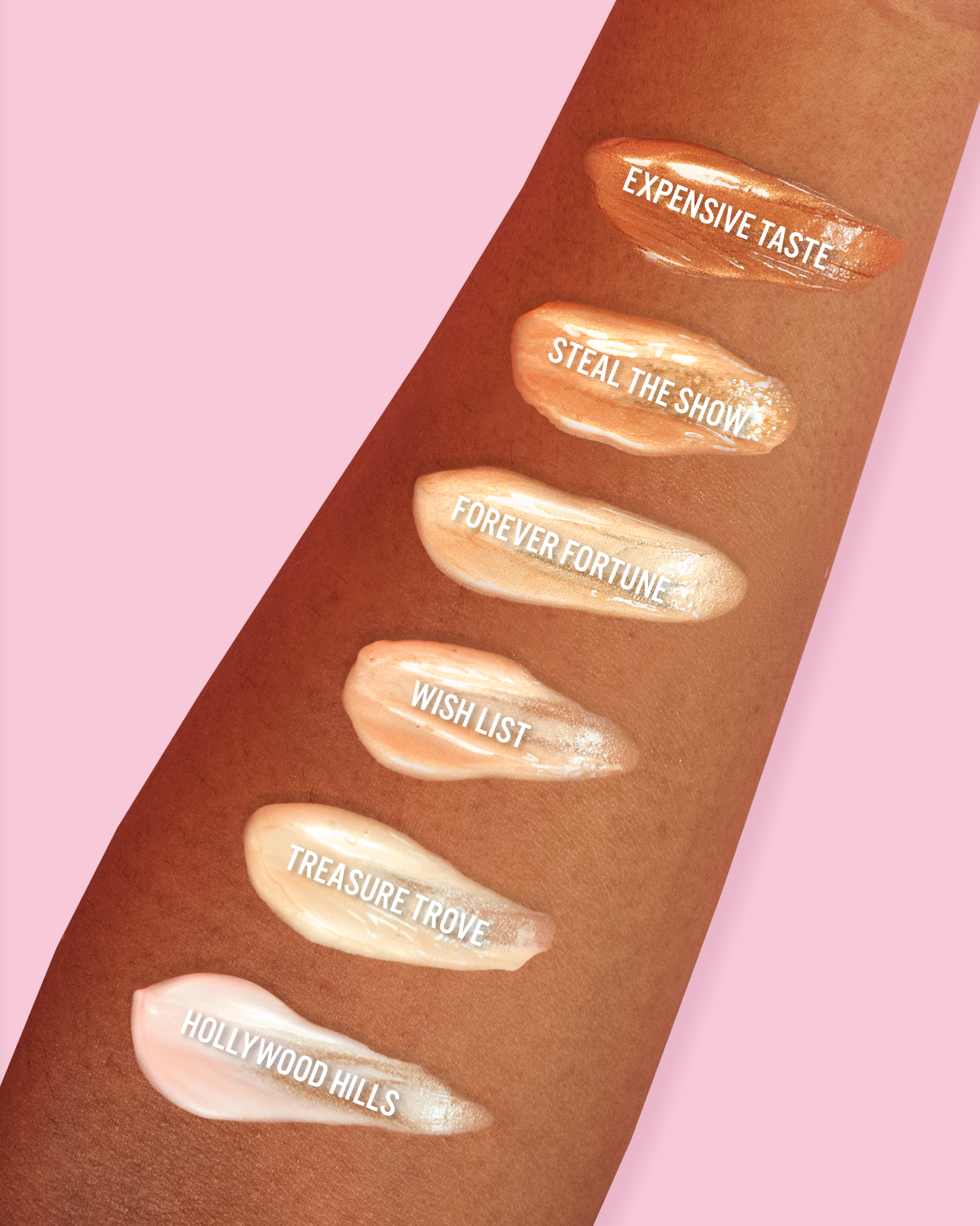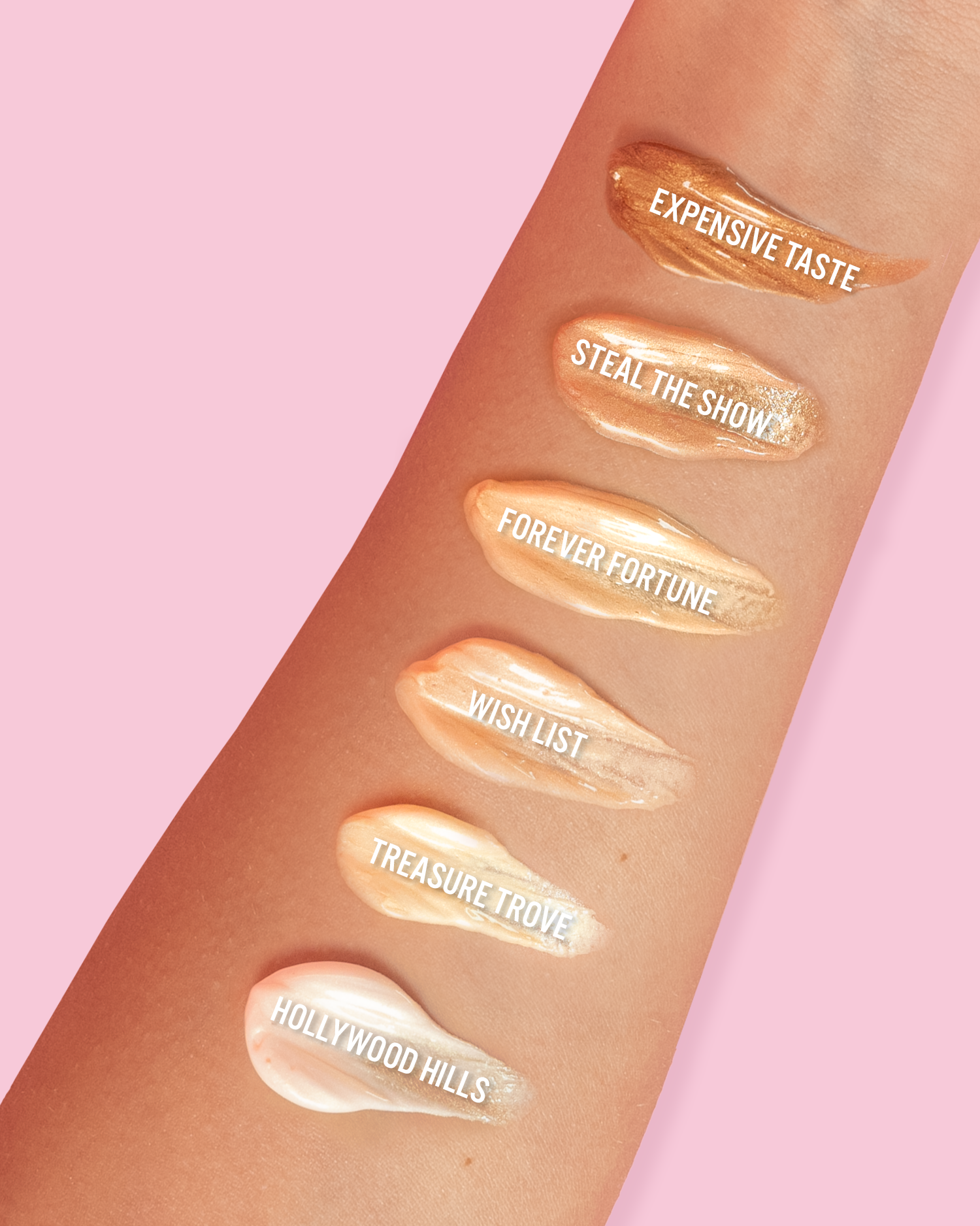 Hollywood Hills: INGREDIENTS; AQUA,CYCLOPENTASILOXANE,PHENYL TRIMETHICONE,DIMETHICONE,METHYLPROPANEDIOL,GLYCERIN,SYNTHETIC FLUORPHLOGOPITE,PHENYLISOPROPYL DIMETHICONE,CALCIUM SODIUM BOROSILICATE,CETYL PEG/PPG-10/1 DIMETHICONE,SILICA DIMETHYL SILYLATE,PEG-10 DIMETHICONE,POLYGLYCERYL-2 TRIISOSTEARATE,SODIUM CHLORIDE,CALCIUM ALUMINUM BOROSILICATE,PHENOXYETHANOL,LAURYL PEG-10 TRIS(TRIMETHYLSILOXY)SILYLETHYL DIMETHICONE,DISTEARDIMONIUM HECTORITE,TOCOPHERYL ACETATE,CAPRYLYL GLYCOL,CHLORPHENESIN,PROPANEDIOL,TIN OXIDE,XANTHAN GUM,TREHALOSE,MICA,ETHYLHEXYLGLYCERIN,SODIUM HYALURONATE,SODIUM POLYGLUTAMATE,HYDROXYACETOPHENONE,1,2-HEXANEDIOL,UNDARIA PINNATIFIDA EXTRACT,FRUCTOOLIGOSACCHARIDES,CHONDRUS CRISPUS,TITANIUM DIOXIDE(CI 77891)